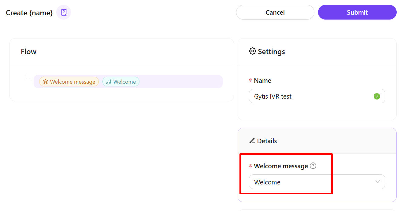 Level2 IVR žinutė: "Pasirinkite miestą. Vilnius -> 1, Kaunas ->2"; Level3 IVR žinutė jau būtų "Pasirinkite temą: Informacija -> 1, Užsakymai->2, Kiti klausimai ->3".
