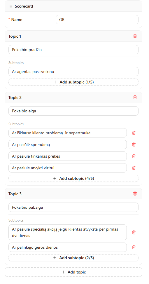 • Norėdami turėti ne tik transkripciją, bet ir pilną pokalbio įvertinimą, pirmiausiai sukurkite norimus kriterijus: